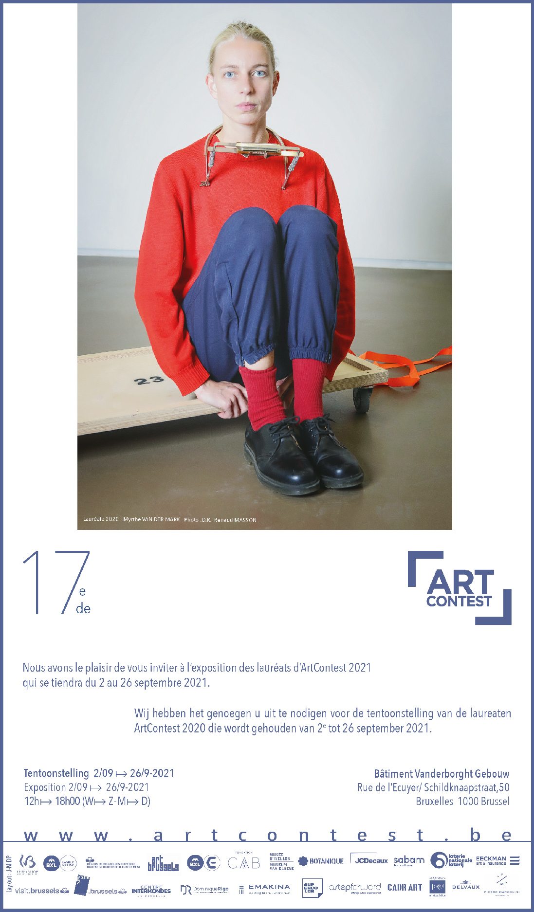 Art Contest est unconcours annuel d’art contemporain de référence pour les jeunes artistes belges à l’initiative de Valérie Boucher, attachée à la scène artistique émergente en Belgique. Exposition du 01.09 au 26.09/2021 à l’Espace Vanderborght, rue de l’Ecuyer 50, 1000 Bruxelles (BE).